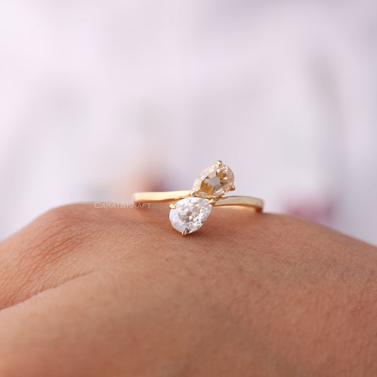 Toi Et Moi Ring, OMC Pear & OMC Champagne Pear Moissanite Engagement Ring