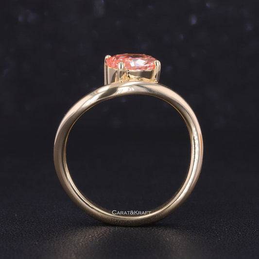 Oval Vivid Pink Moissanite Diamond Curved Ring