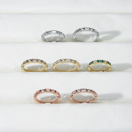 Emerald and Round Moissanite Diamond Wedding Band
