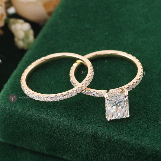 Elegant Radiant Cut Solitaire Moissanite Wedding Ring Set