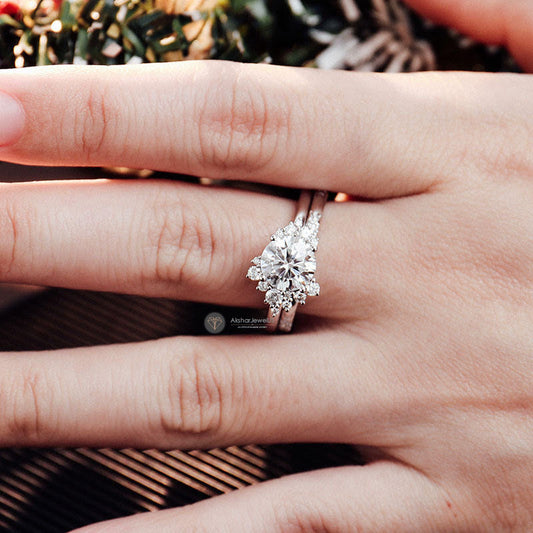 2.00CT Round Cluster Lab Grown Diamond & Moissanite Ring Set