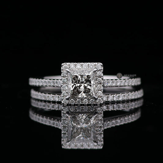 Princess Halo Moissanite Engagement Ring set