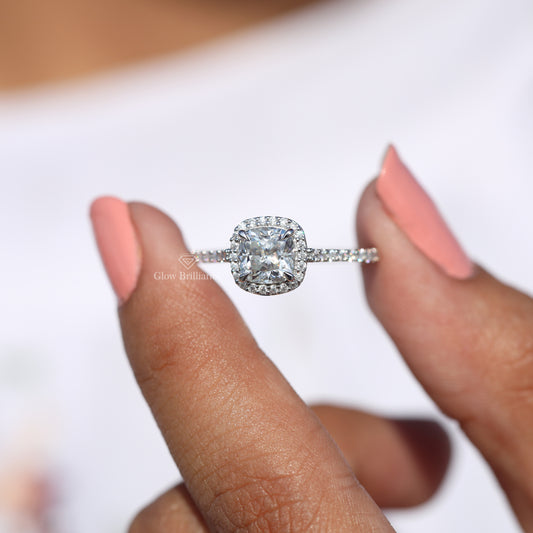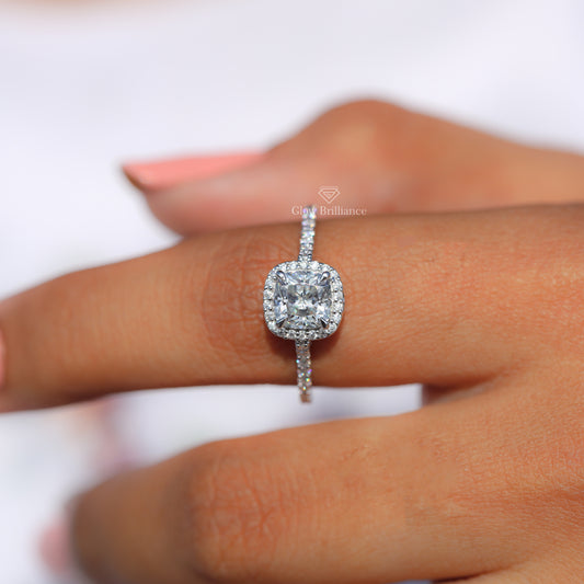 6mm Cushion Halo Moissanite Diamond Engagement Ring