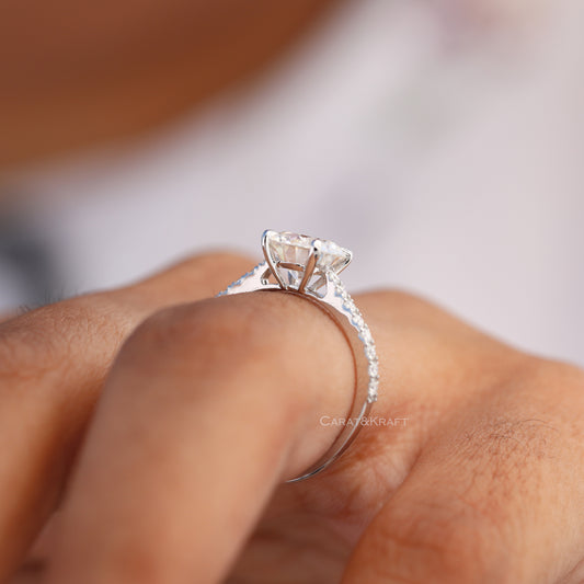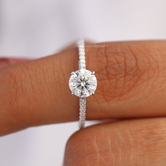 Round Brilliant Cut Moissanite Ring, Claw Prongs Pave Set Ring