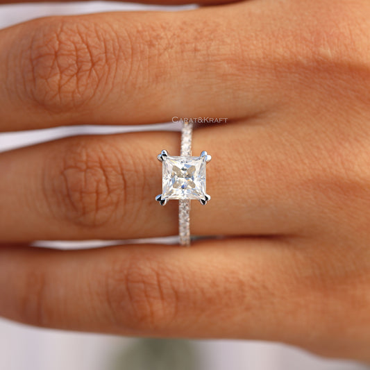 0.50 to 5.00CT Princess Cut Lab Grown Diamond Engagement Ring