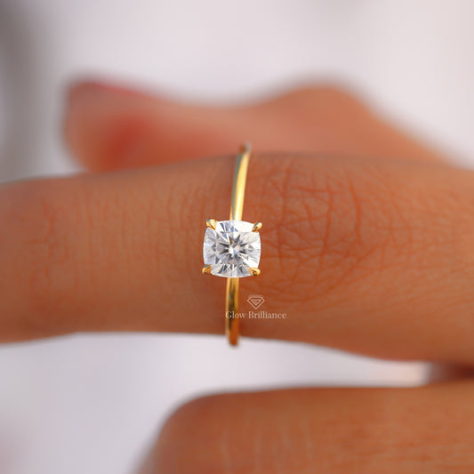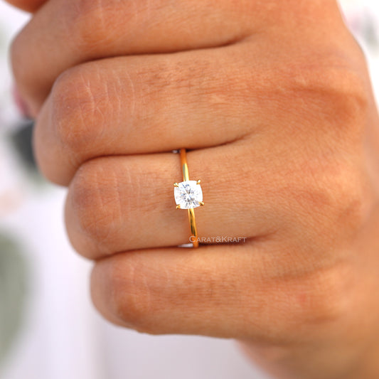 1.00 to 5.00 CT Cushion Cut Moissanite Solitaire Ring