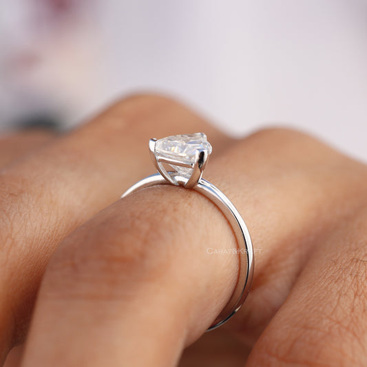 East West Pear Cut Solitaire Moissanite Diamond Engagement Ring