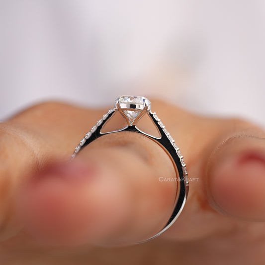 0.50 - 5.0 CT Round Lab Created Diamond Pave Engagement Ring