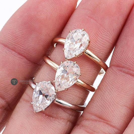 Old Mine Pear Cut lab Grown diamond Solitaire Engagement Ring