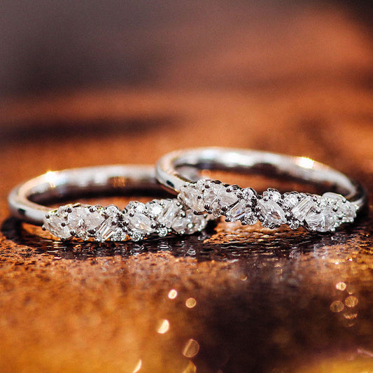 Marquise And Round Cut Cluster Lab Grown Diamond Curved Wedding band