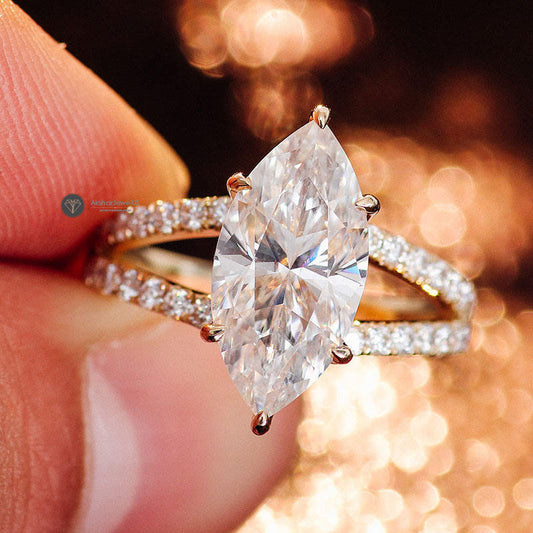 Marquise Cut Lab Grown Diamond Hidden Halo Moissanite Ring