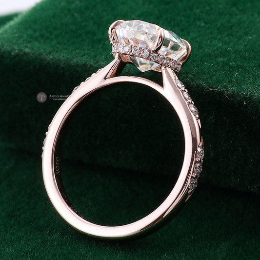 Oval Hidden Halo Lab Grown Diamond Ring, Oval and Pear Moissanite Ring