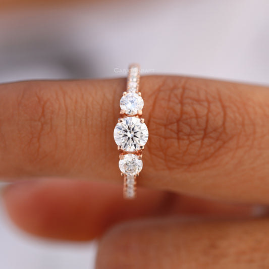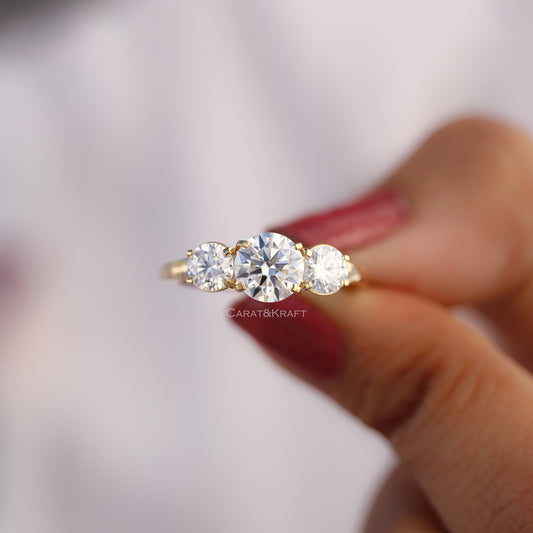 Three Stone Round Cut Lab Grown Diamond Engagement Ring
