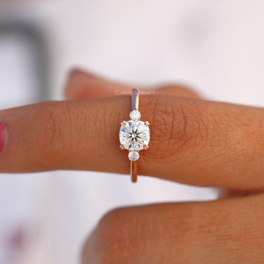 Round Cut Three Stone Lab Grown Diamond Engagement Ring