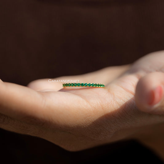 1.5mm Green Emerald Round Cut Diamond Wedding Band