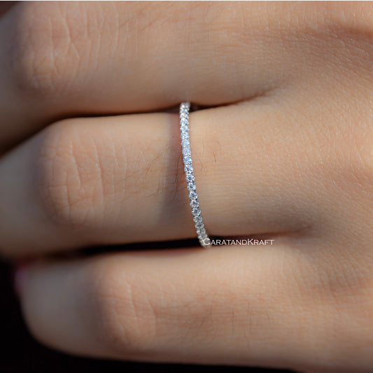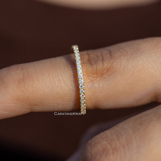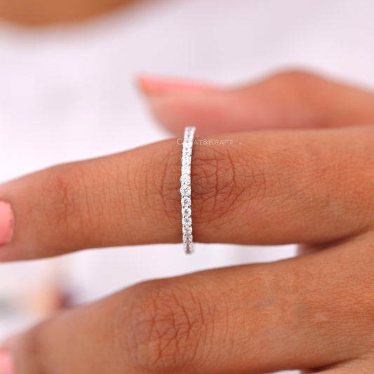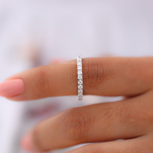 1.5mm Full Eternity Moissanite Wedding Band, Eternity Pave Wedding Ring