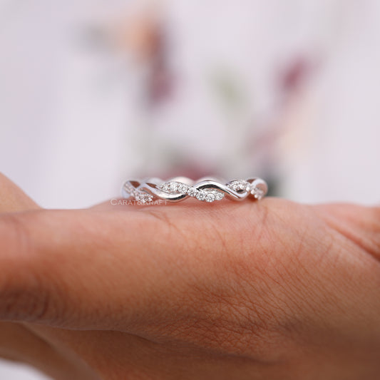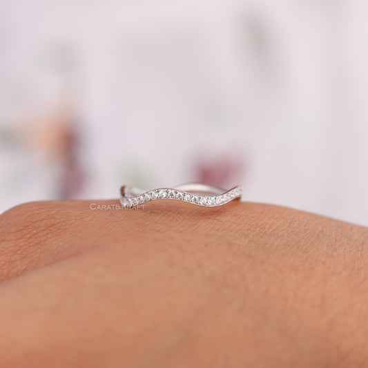 curved Moissanite Diamond Wedding Band With Chevron Style