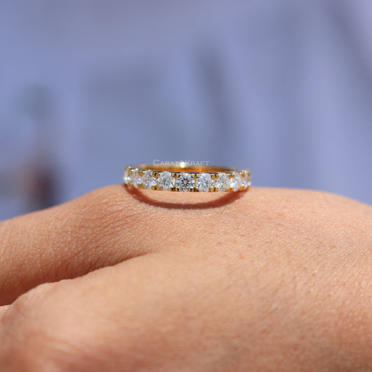 Moissanite 1.3mm Round Cut Half Eternity Wedding Band