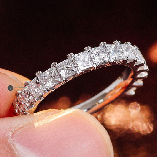 3mm Princess Cut Colorless Moissanite 3/4 Eternity Ring