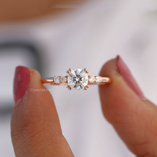 1.00 to 5.00 CT Cushion Cut Moissanite Solitaire Ring