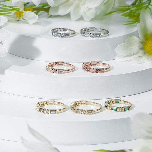 Emerald & Round Lab Grown Diamond Half Eternity Band