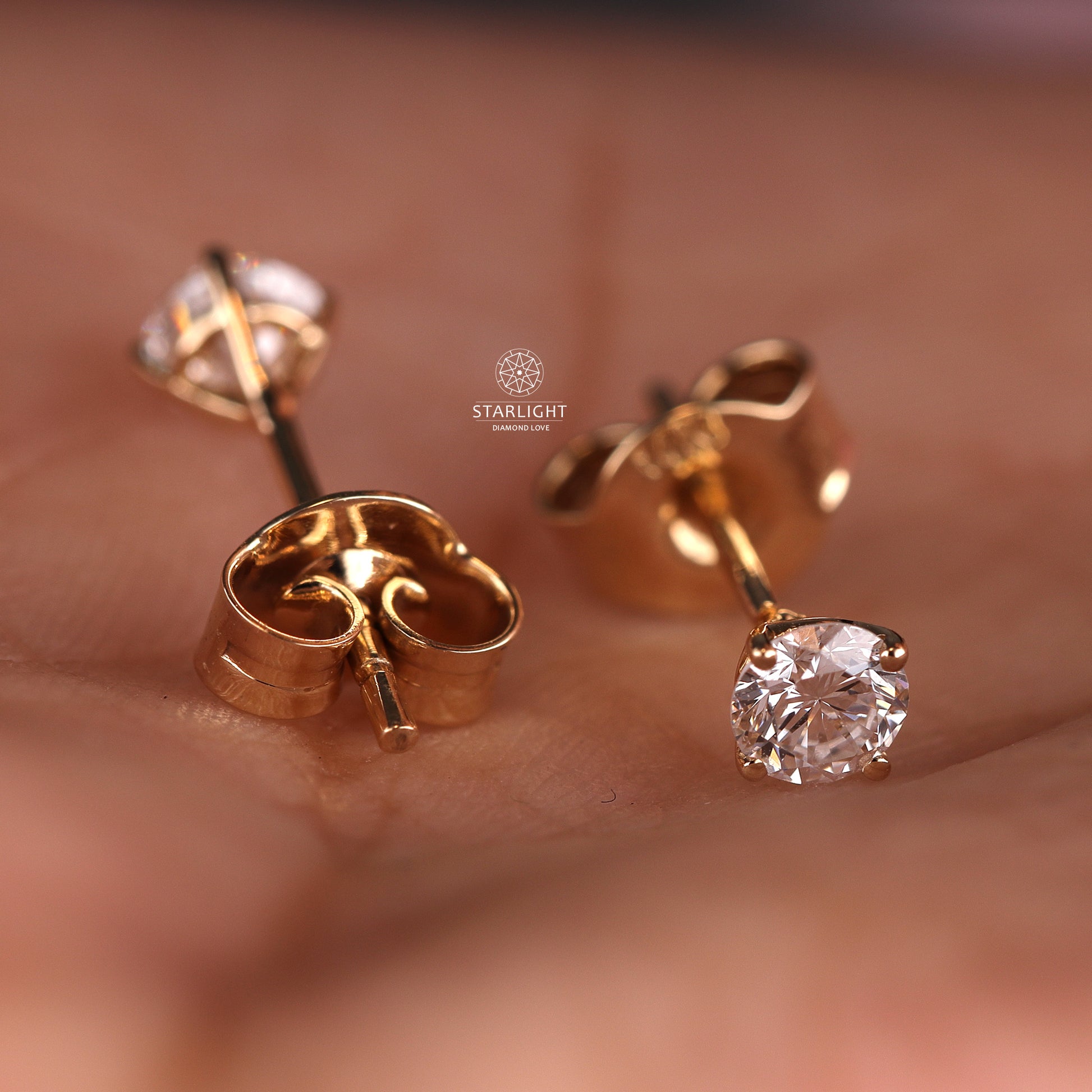 Round Cut Lab Grown Diamond Earrings, 0.20-4.0 Carat Total Weight Diamond Earrings, 4 Prong Diamond Earrings, Wedding Earrings For Women