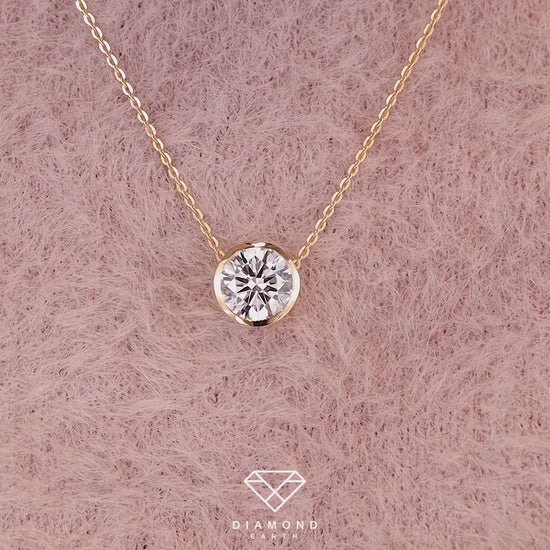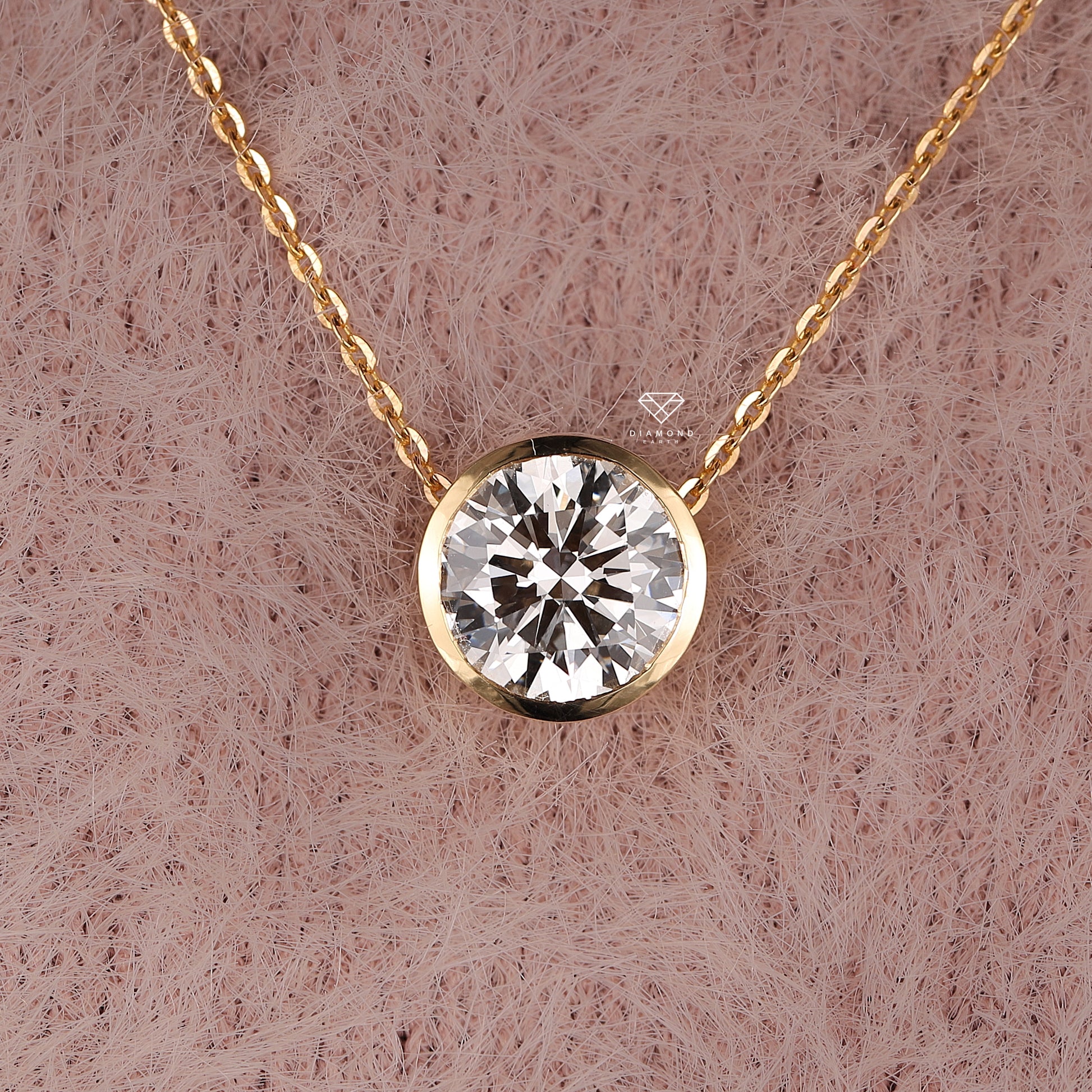 0.35 CT & 2.0CT Lab grown Diamond Round Bezel Pendant in 10k Yellow Gold
