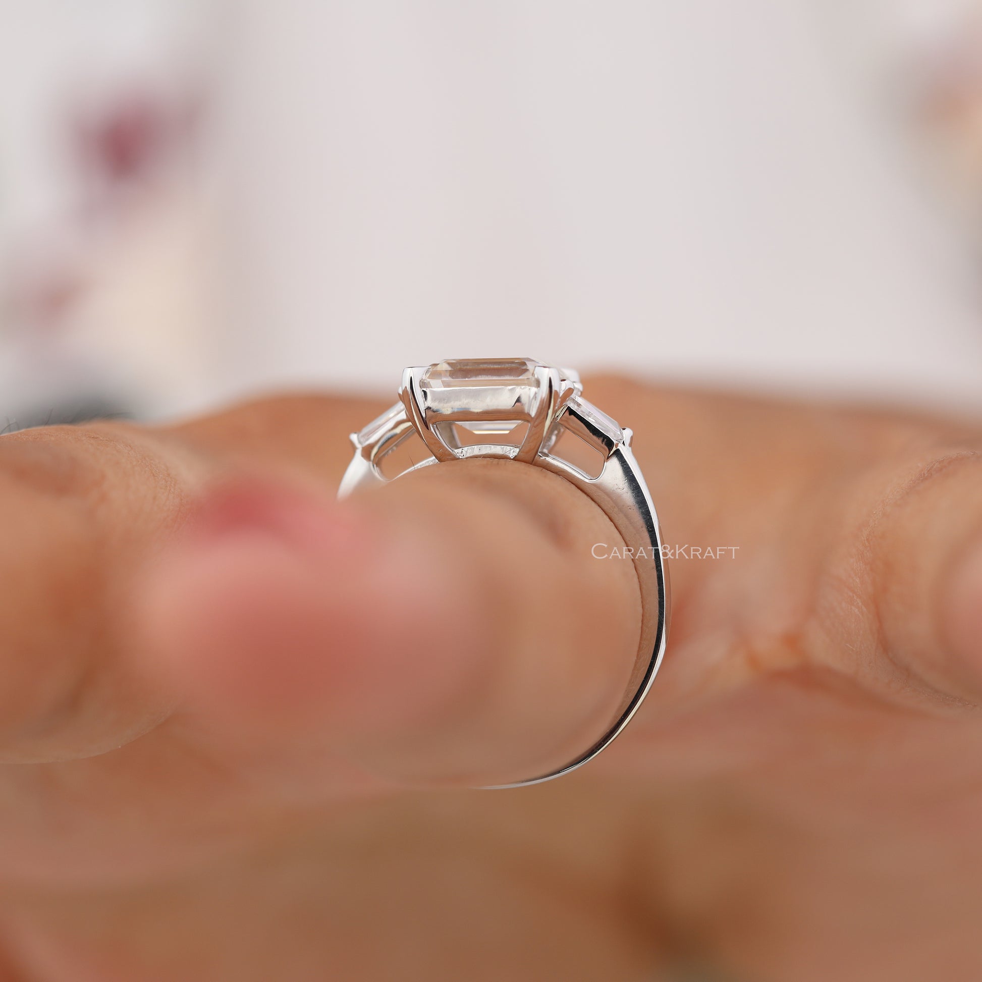 0.50 CT To 3.00 CT Emerald Cut Three Stone Lab Grown Diamond Engagement Ring,