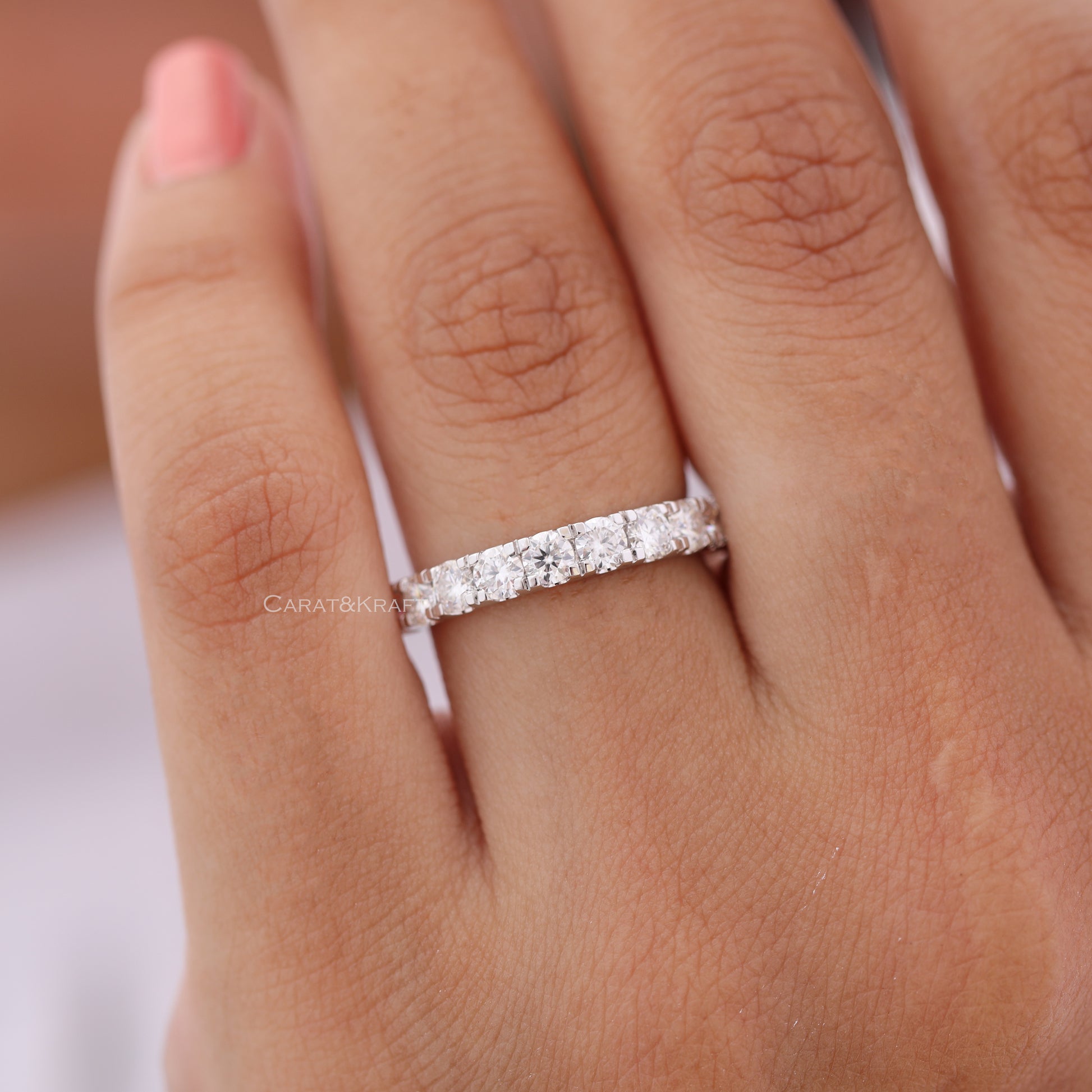 3mm Lab Grown Diamond Platinam Ring, 3/4 Eternity Diamond Platinum Band, Stackable Wedding Band