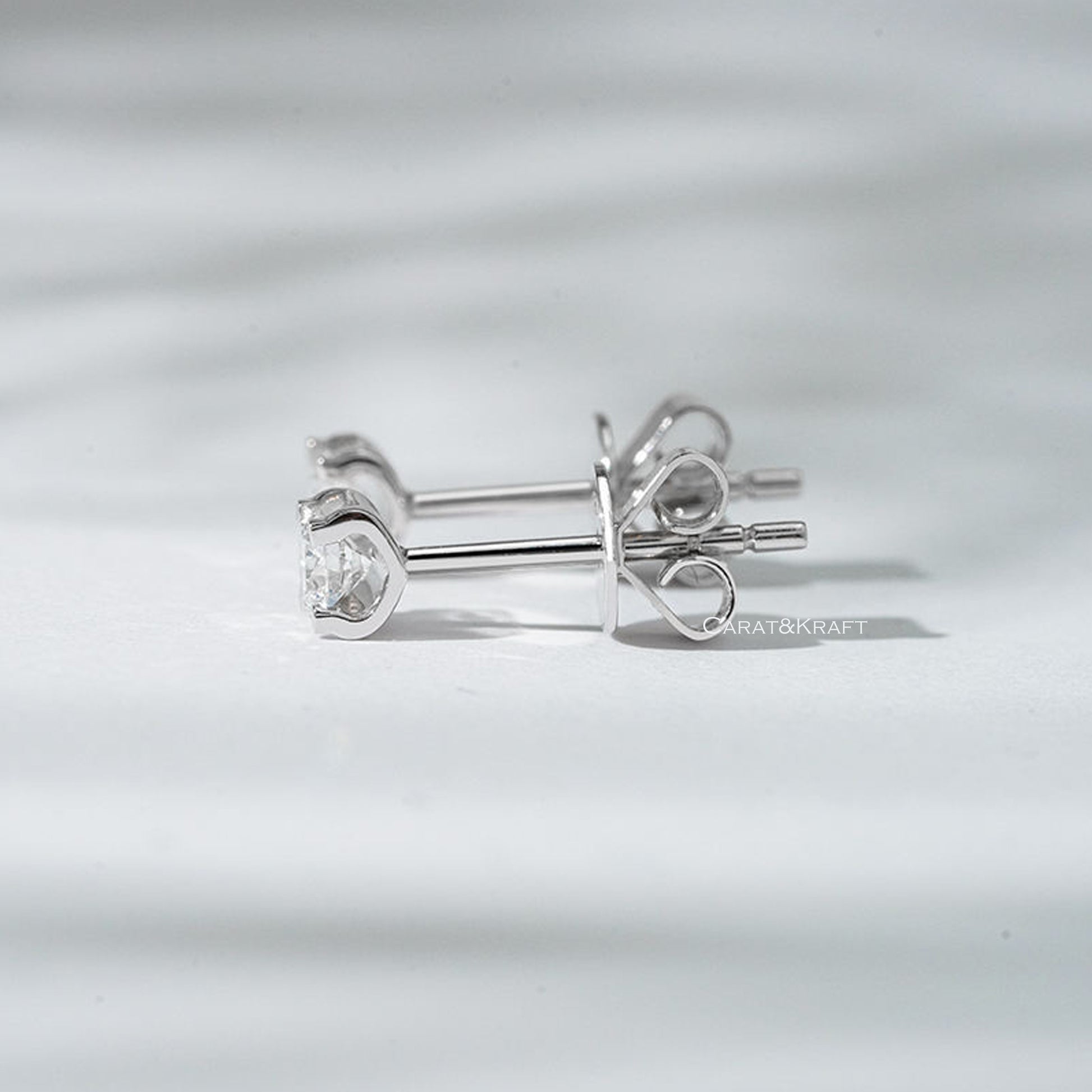 Round Moissanite Diamond Solitaire Earring, Solid Gold Diamond Earrings, Unique Diamond Stud Earrings, anniversary gift for her